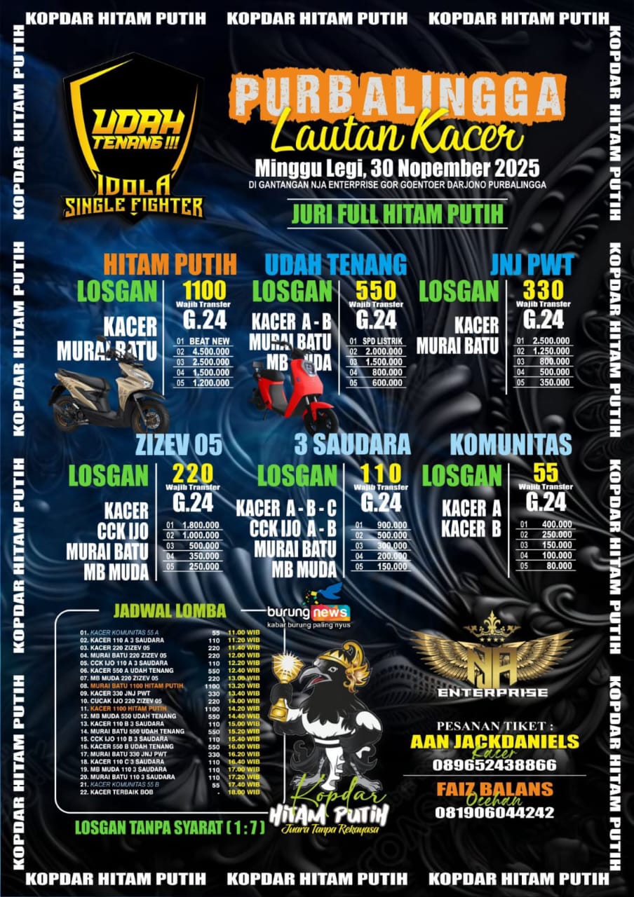 PURBALINGGA LAUTAN KICAU GOR GOENTOER DARJONO Minggu, 30 November 2025 Jam 10:00 Diliput oleh burungnews.com DOWNLOAD BROSUR