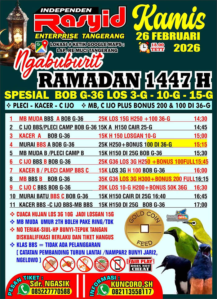 RE MUCI NGABUBURIT KAMIS GTG RE MUCI Kamis, 26 Februari 2026 Jam 15:00 Diliput oleh burungnews.com DOWNLOAD BROSUR