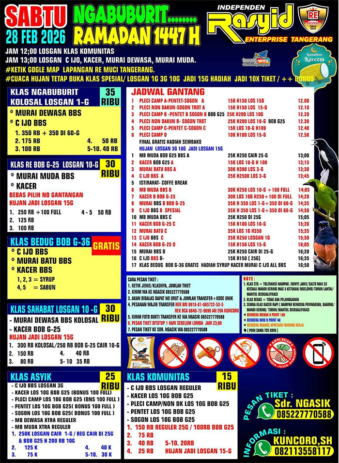 RE MUCI NGABUBURIT SABTJ Sabtu, 28 Februari 2026 Jam 15:00 Diliput oleh burungnews.com DOWNLOAD BROSUR