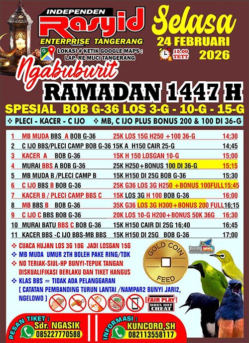 RE MUCI NGABUBURIT SELASA GTG RE MUCI Selasa, 24 Februari 2026 Jam 15:00 Diliput oleh burungnews.com DOWNLOAD BROSUR