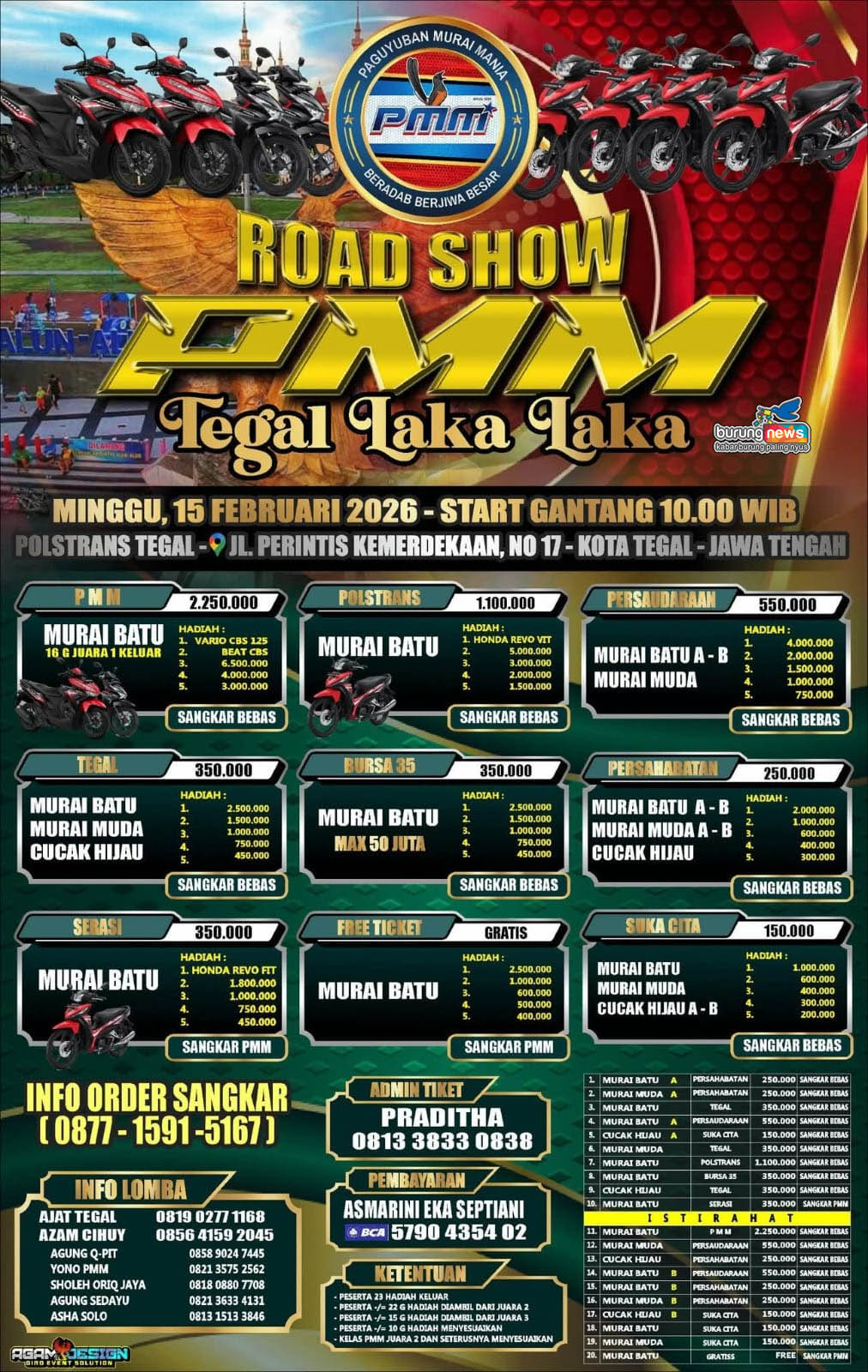Pengembangan itulah yang membuat PMM makin digemari oleh para kicaumania, seperti event-event sebelumnya. “Insya Allah kami siap memberikan yang terbaik untuk kicaumania Tegal dan sekitarnya,” ujar Culik, Sekjen PMM. Hal yang sama juga ditegaskan oleh Kadiv. juri Agung Qpit. [maltimbus]
