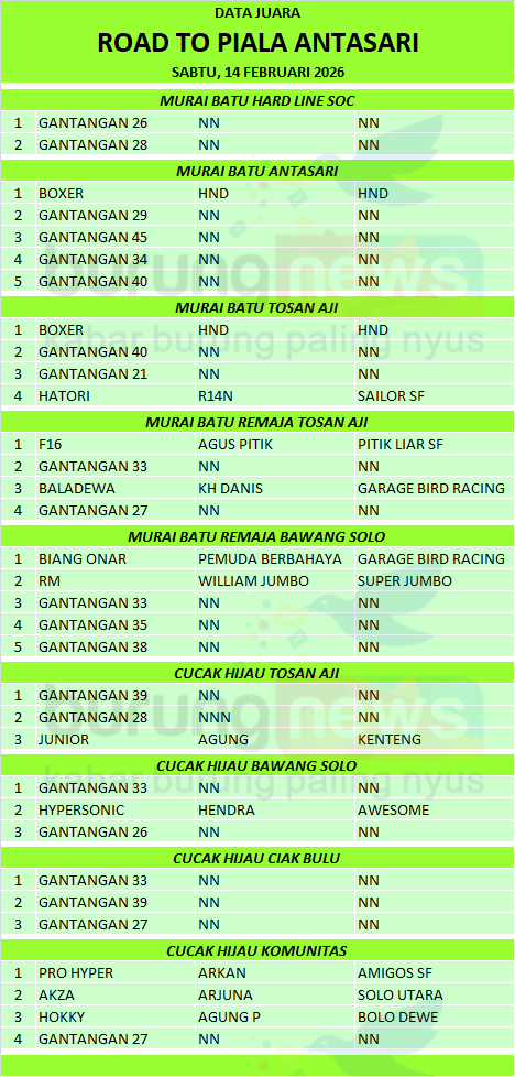 Di kelas Murai Batu Tosan Aji, Boxer berhasil menggandakan kemenangan setelah meraih koncer A mutlak dari dewan juri. Keberhasilan Boxer meraih dua kali kemenangan di Road to Piala Antasari membuktikan kestabilannya di jalur juara setelah beberapa pekan juga selalu moncer di sekitaran Solo Raya.
