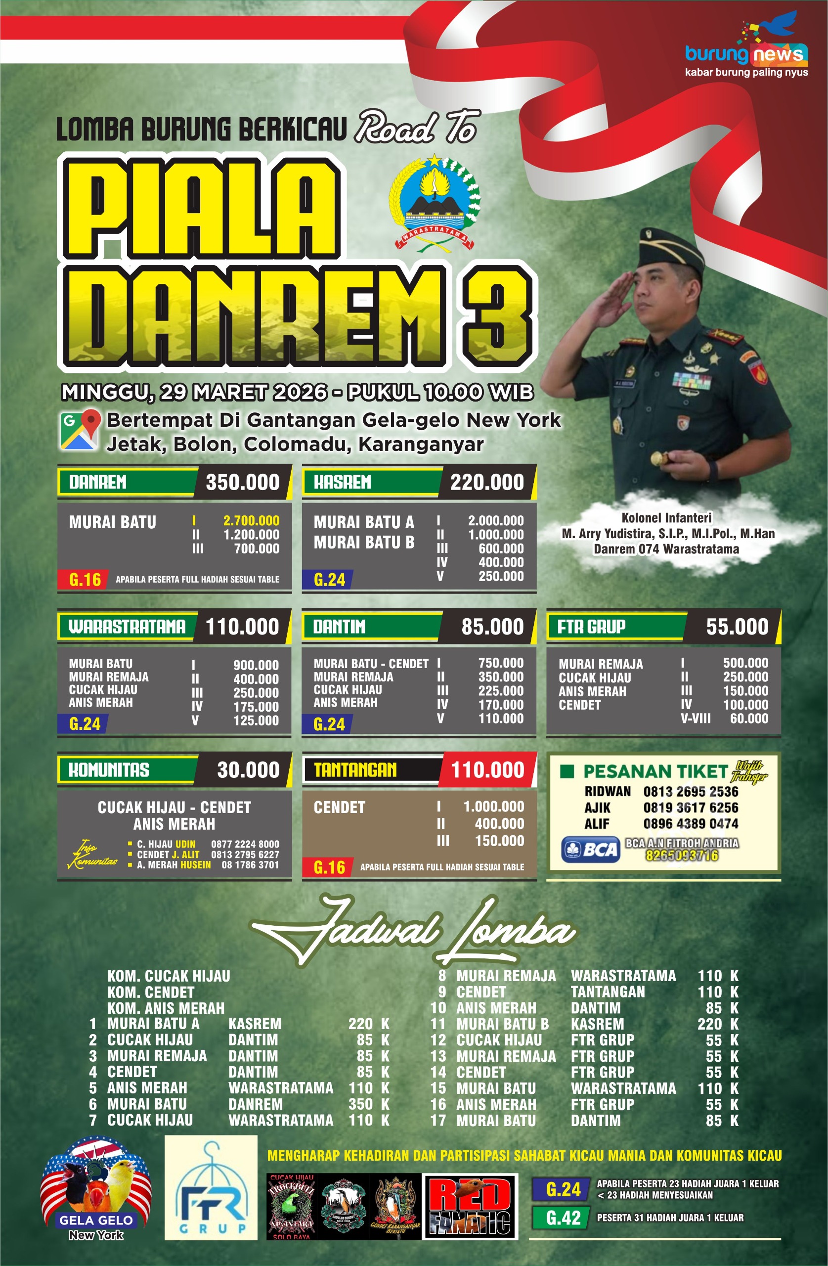 ROAD TO PIALA DANREM 3 GANTANAGAN GELA GELO Minggu, 29 Maret 2026 Jam 10:00 Diliput oleh burungnews.com DOWNLOAD BROSUR