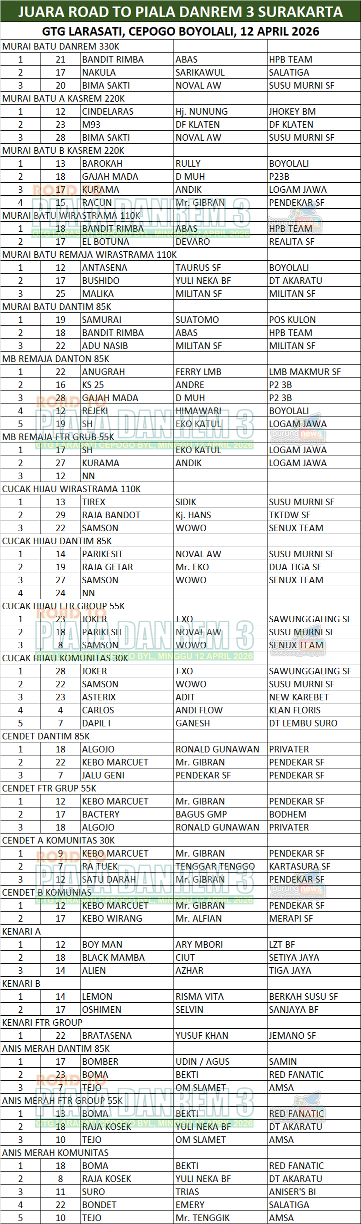 ROAD TO PIALA DANREM 3 – CEPOGO BYL + DATA JUARA