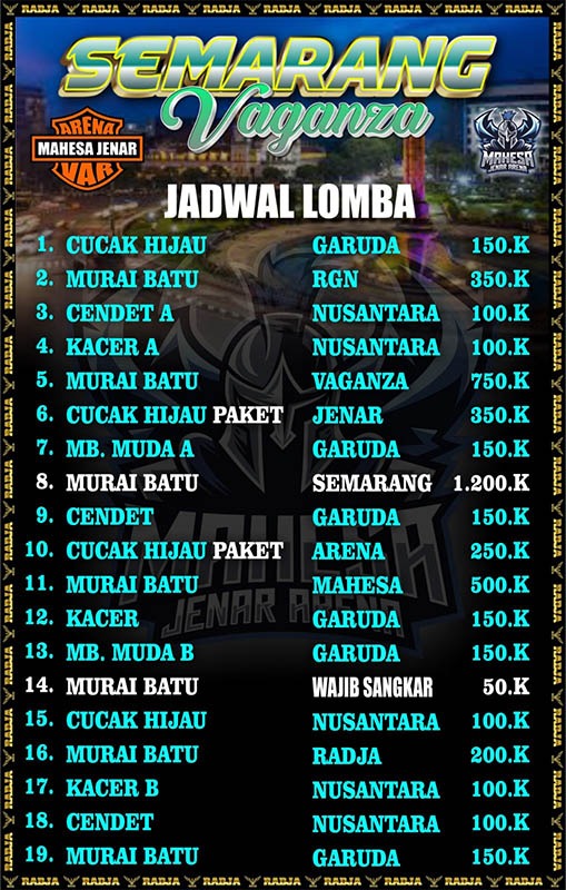 Gambaran event Semarang Vaganza bakal meledak sudah terlihat. Dari 9 kelas Murai Batu yang dibuka, menyisakan di kelas 750K saja, itu punya hanya tersedia 5 lembar tiket.