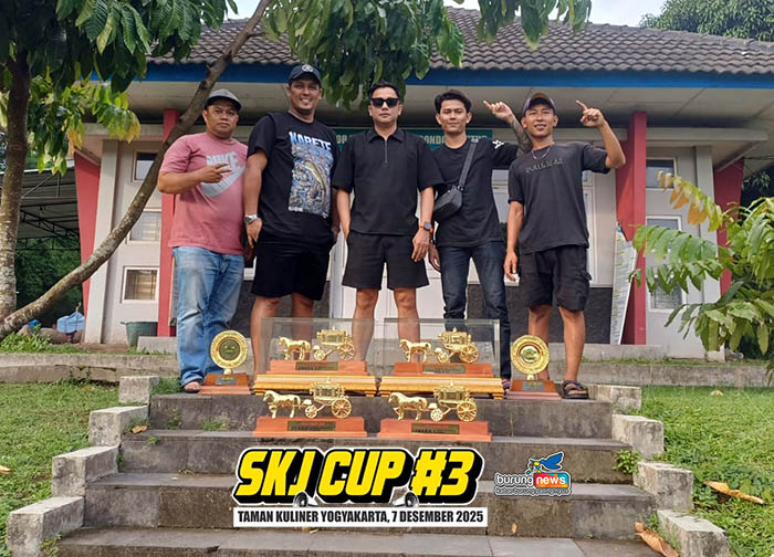 Ketika para juri di SKJ Cup #3 pada Minggu 7 Desember baru saja menancapkan koncer, wajah Waqi langsung sumringah. Si bongsor kenari Purbaya, bisa juara 1 di kelas utama Standar Bebas tiket 1.655K. Kelas utama Standar Kecil yang main lebih dulu, juga dimenangkan oleh jagoannya, tiket 775K.