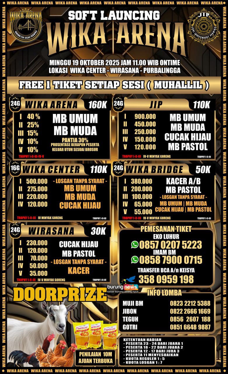 SOFT LAUNCHING WIKA ARENA WIKA CENTER - WIRASANA Minggu, 19 Oktober 2025 Jam 10:00 Diliput oleh burungnews.com DOWNLOAD BROSUR