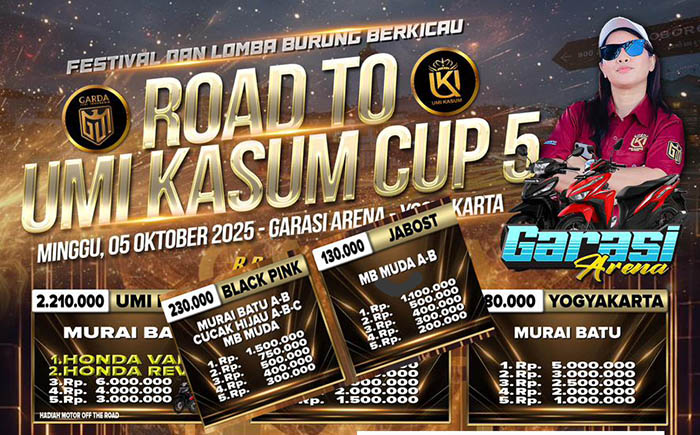 Untuk pertama kalinya, Umi Kasum bersama GJI menggelar Road Show ke Yogyakarta, Minggu 5 Oktober 2025 di Garasi Arena. Sebelumnya sudah menjelajah banyak daerah di blok barat, Sumatera, Kalimantan, blok tengah terakhir adalah Piala Canting Pekalongan.