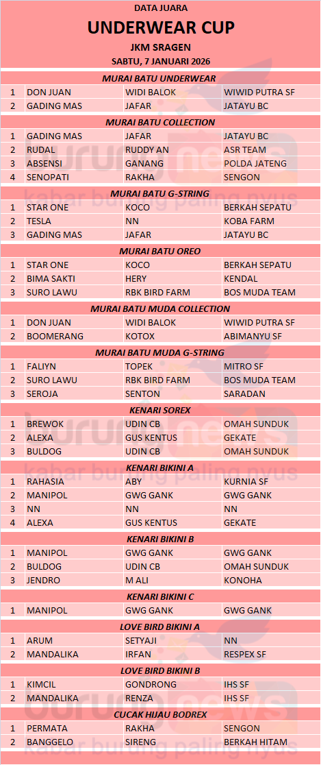 Dilombakannya kembali kelas kenari di Underwear Cup JKM Sragen mendapatkan animo cukup tinggi dari kenarimania sekitar Sragen kota.